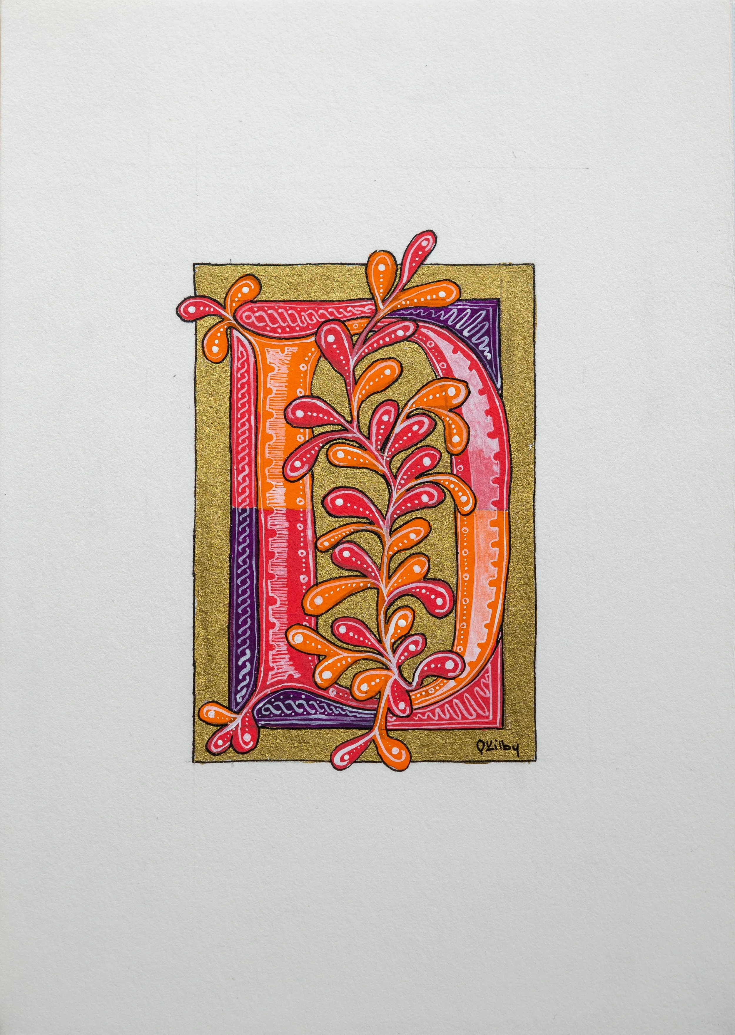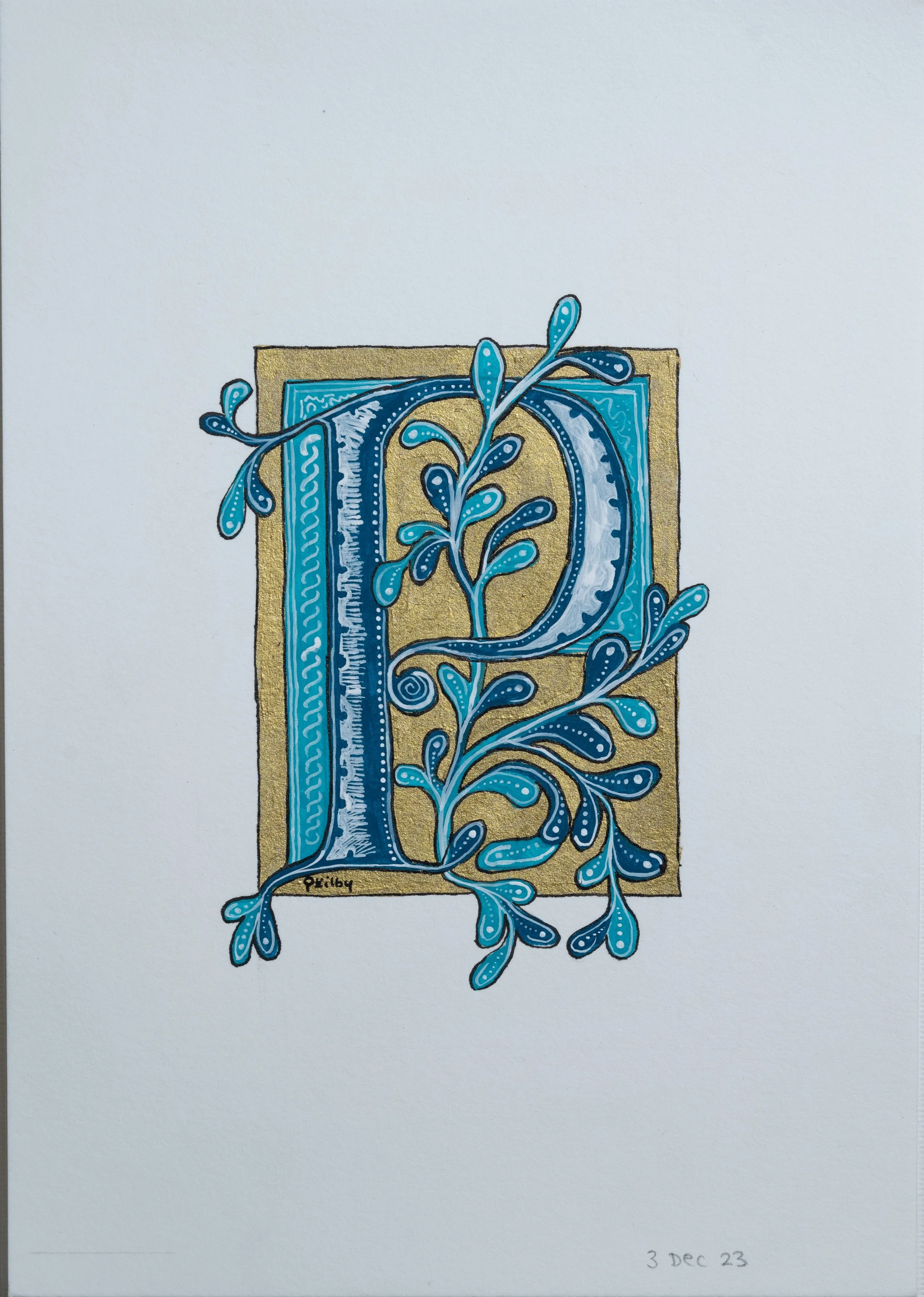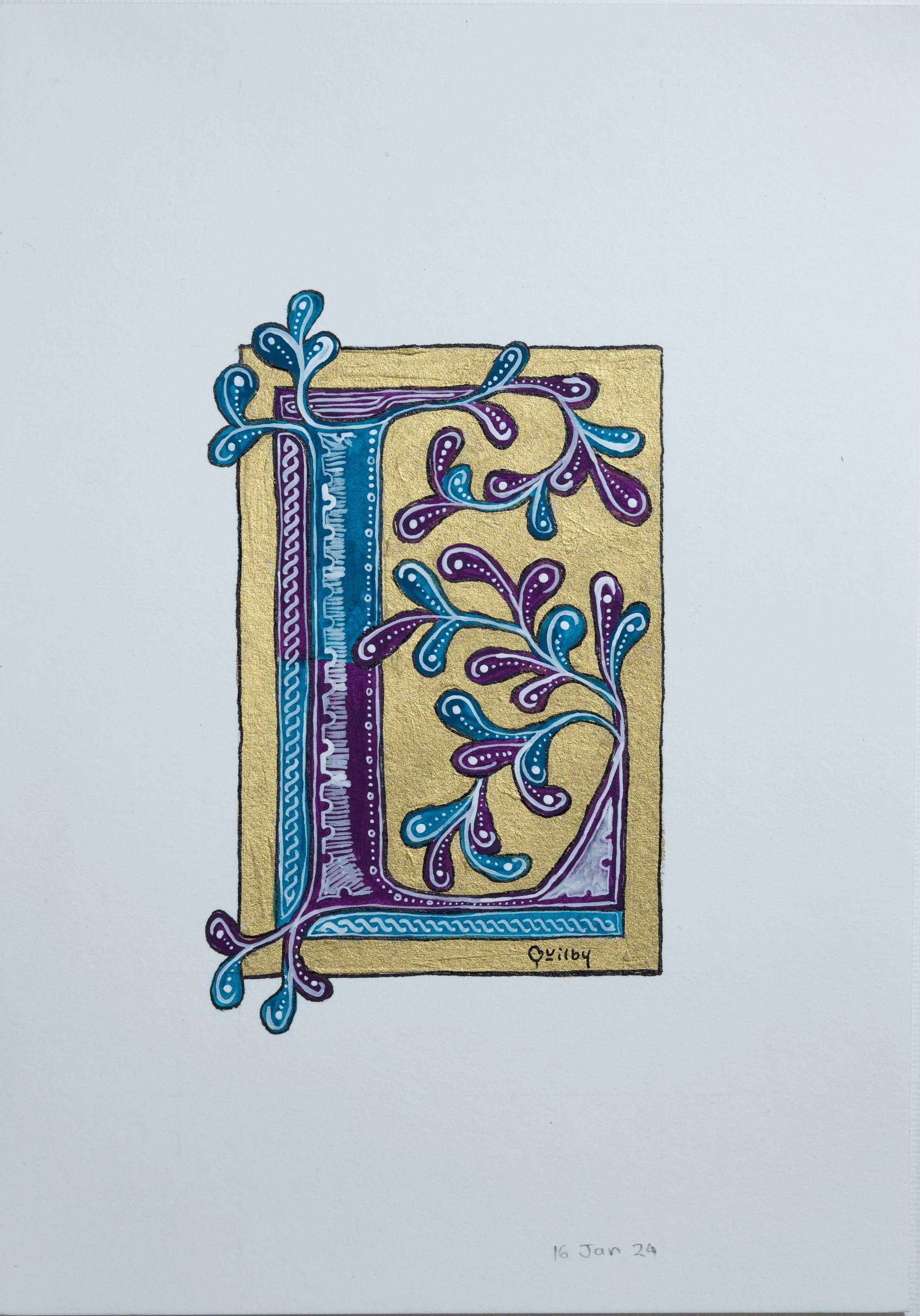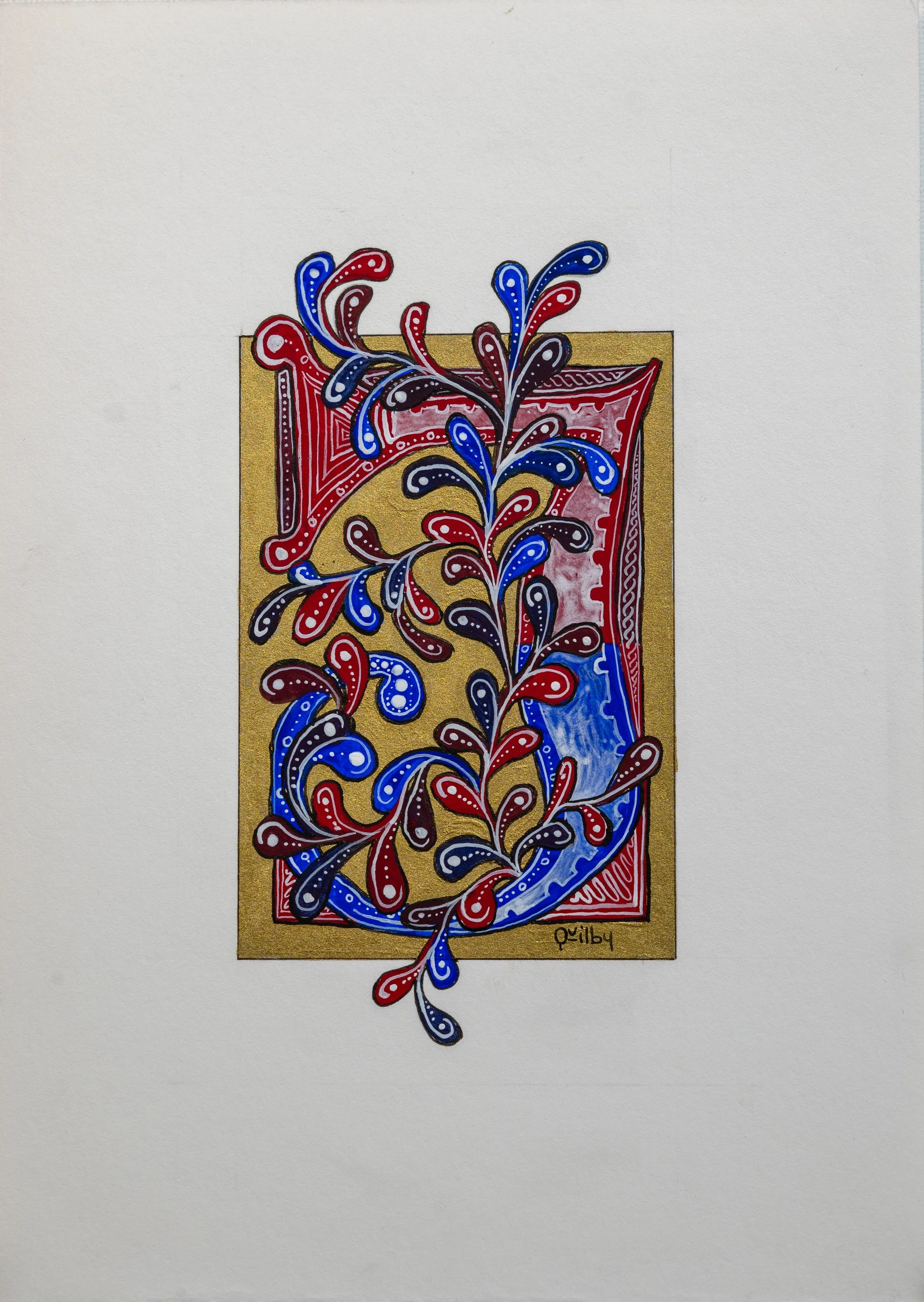 My current body of work mainly consists of illuminated letters. I am inspired by medieval manuscripts, particularly those created in the 14th, through 16th centuries in the gothic style. My letters originated as greeting cards for friends and family which I have now developed into artworks. I also enjoy painting landscapes, nature and patterns.