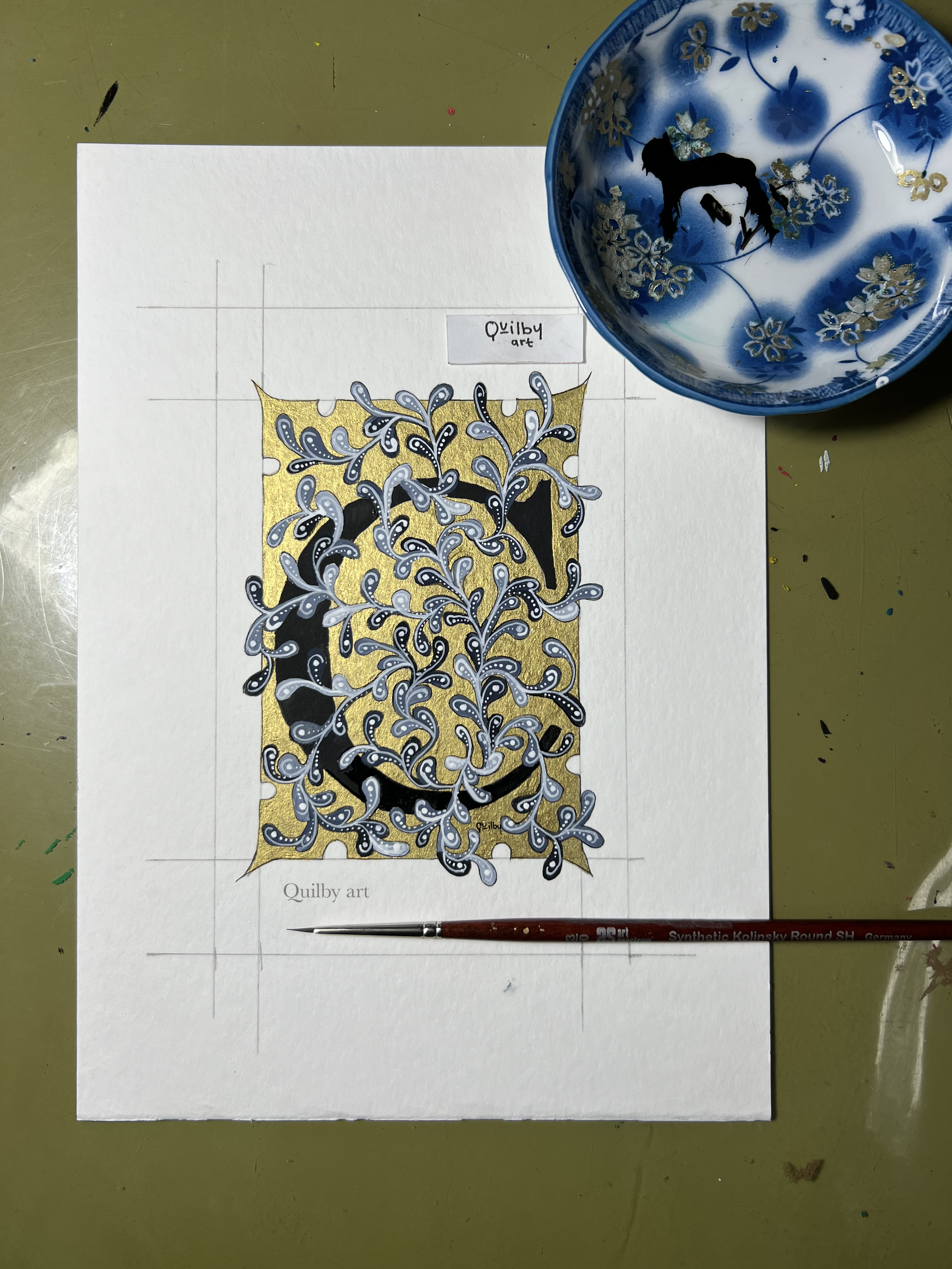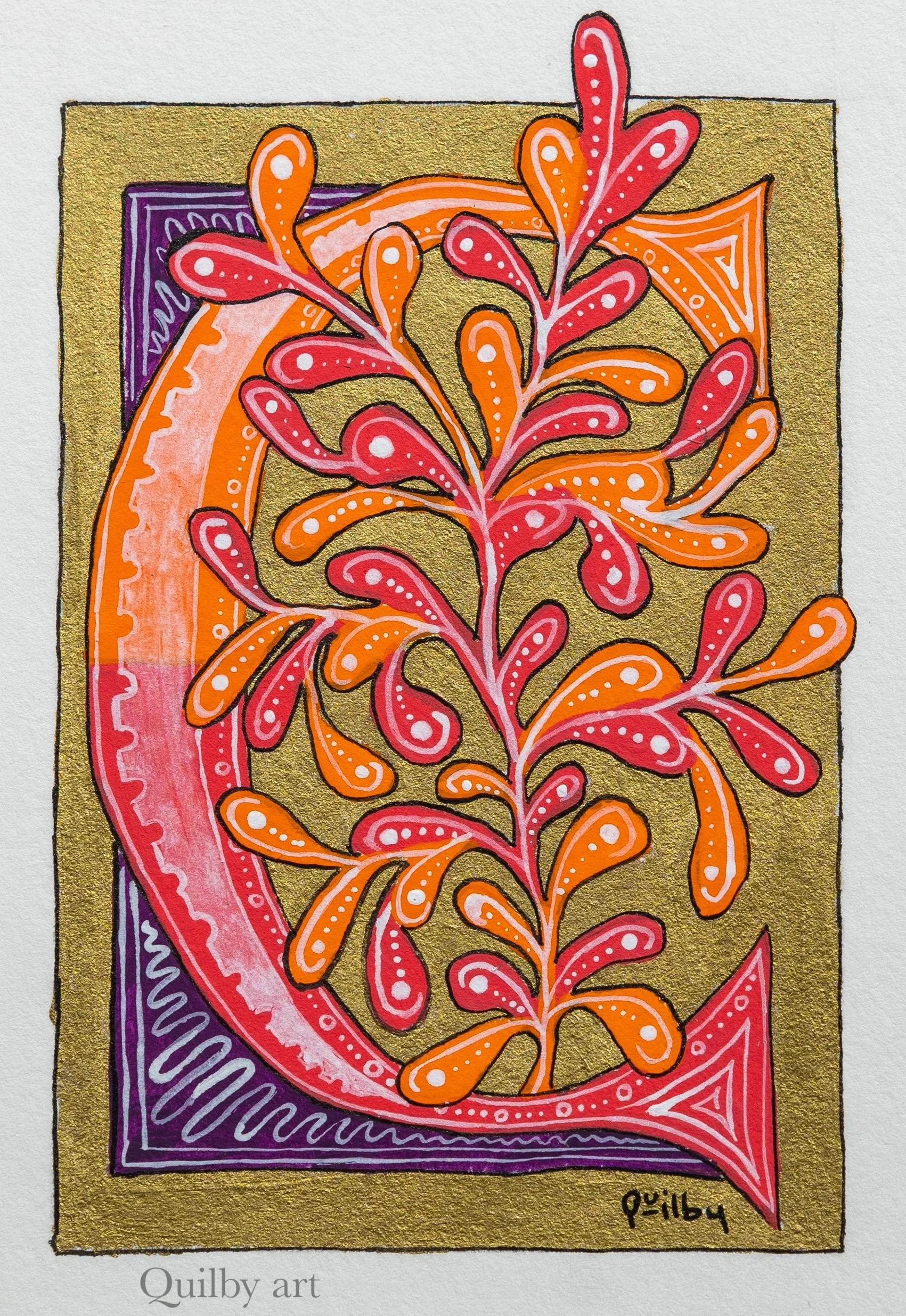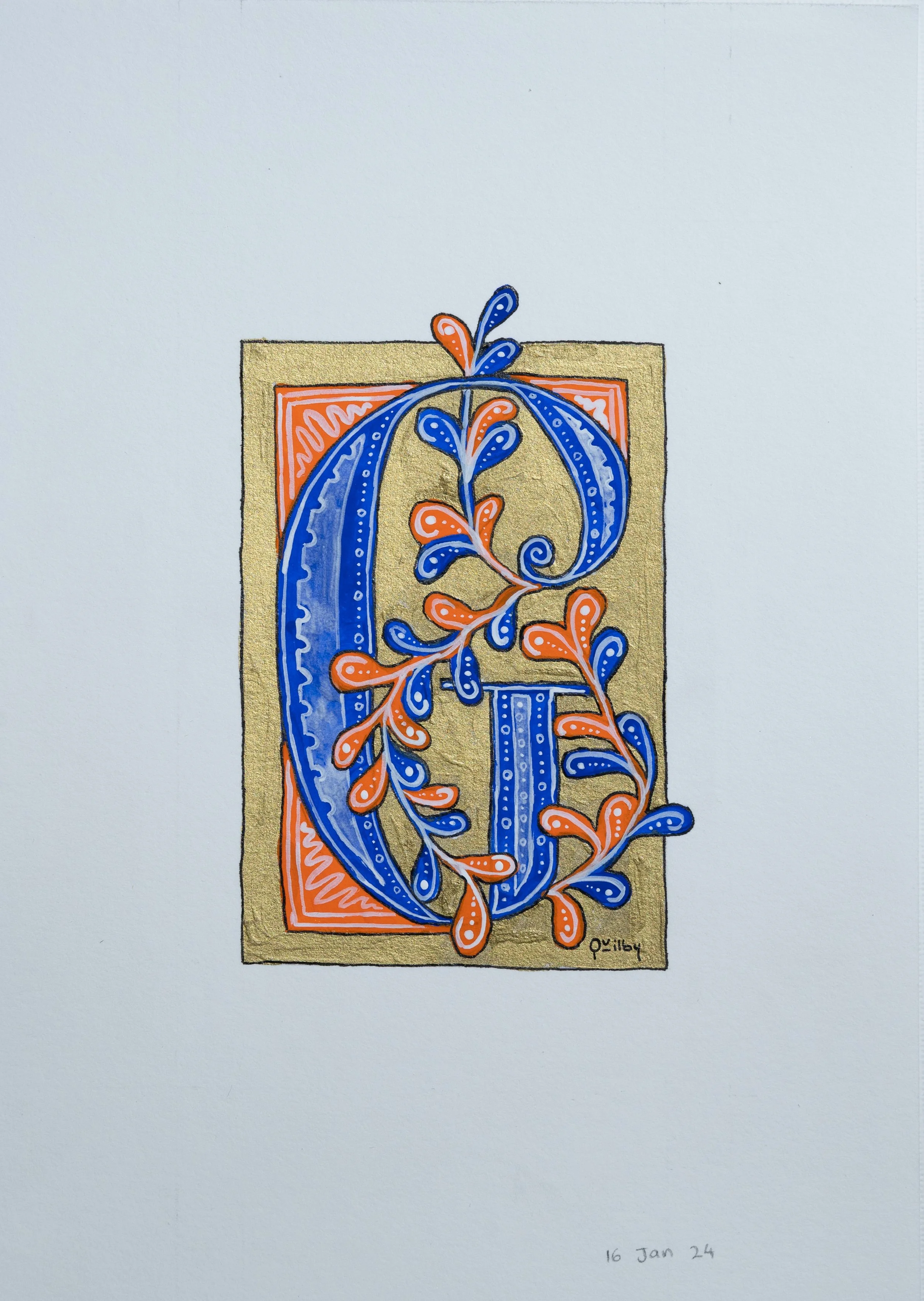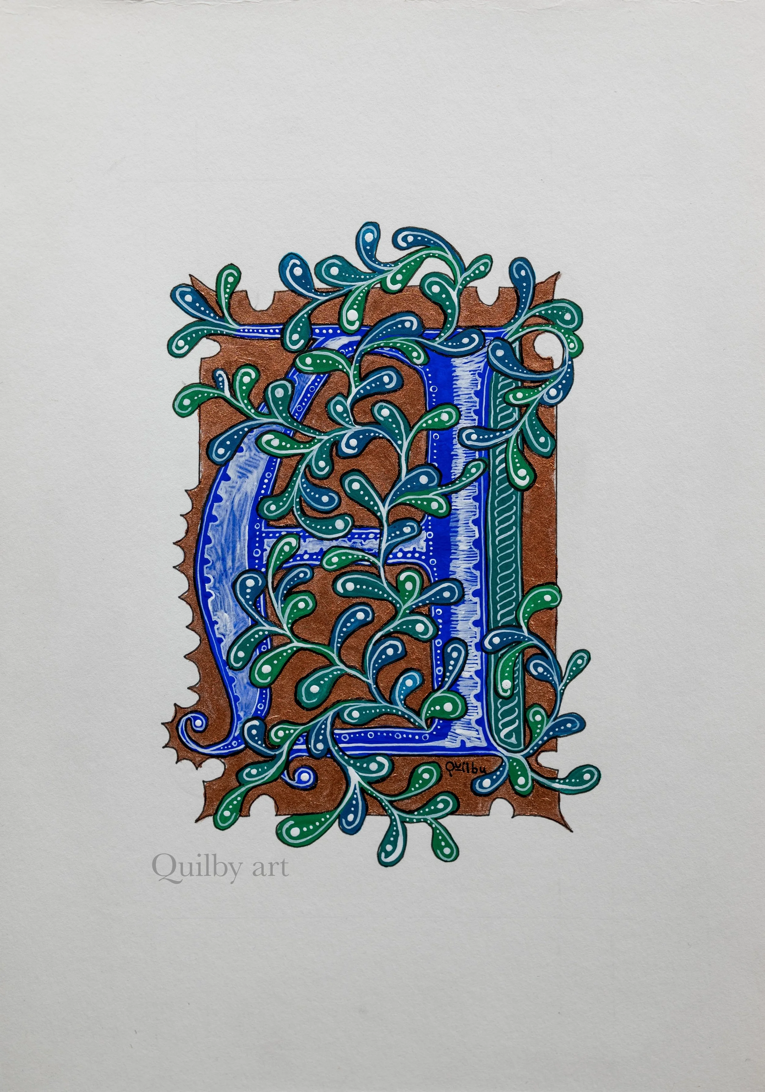 My current body of work mainly consists of illuminated letters. I am inspired by medieval manuscripts, particularly those created in the 14th, through 16th centuries in the gothic style. My letters originated as greeting cards for friends and family which I have now developed into artworks. I also enjoy painting landscapes, nature and patterns.